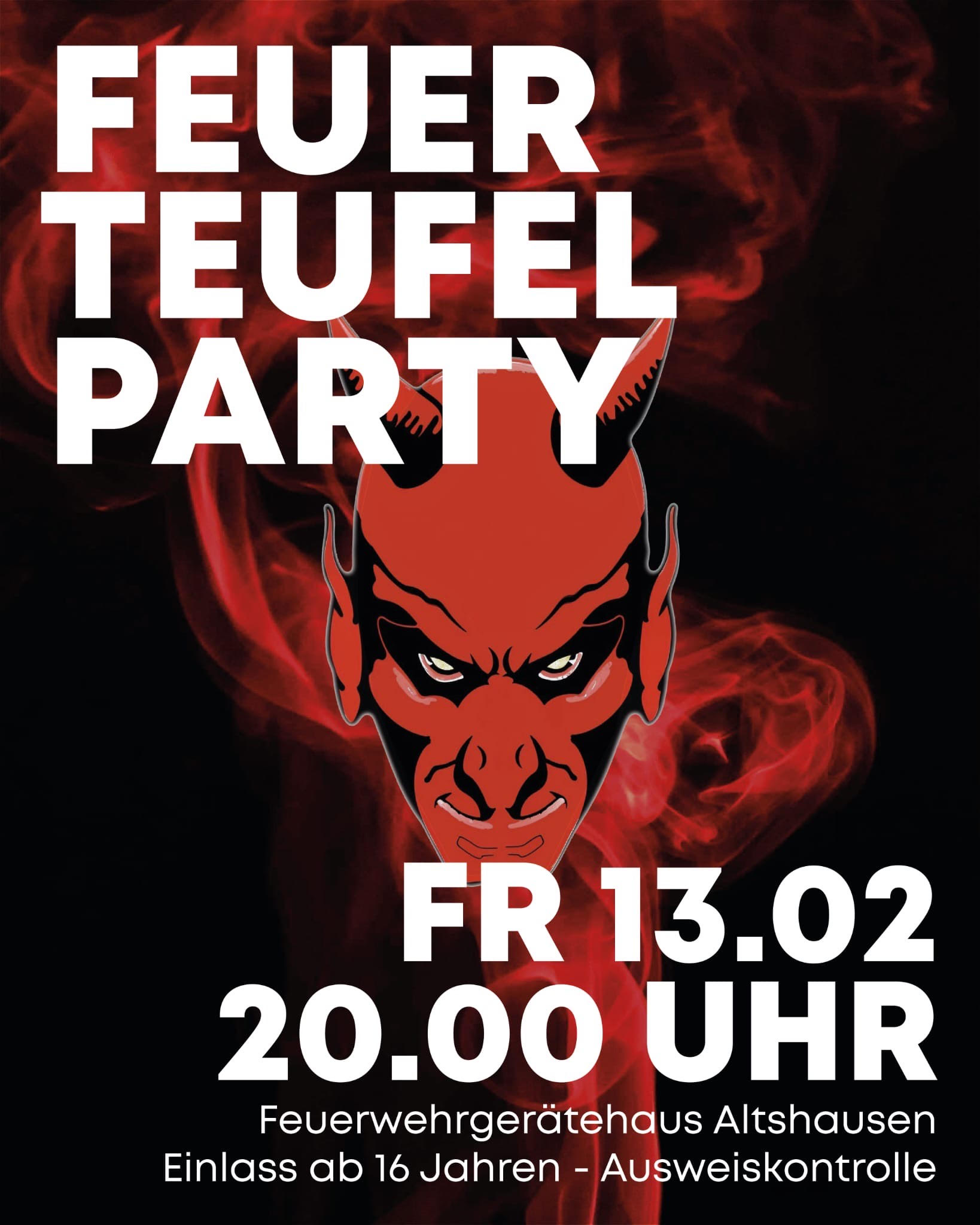 🔥 Feuerteufelparty 2026 🔥Markiert den 13.02.2026 in eurem Kalender! Unsere legendäre Feuerteufelparty steigt im Feuerwehrhaus Altshausen und ihr wollt dieses Event nicht verpassen! 🚒🔥 ⏰